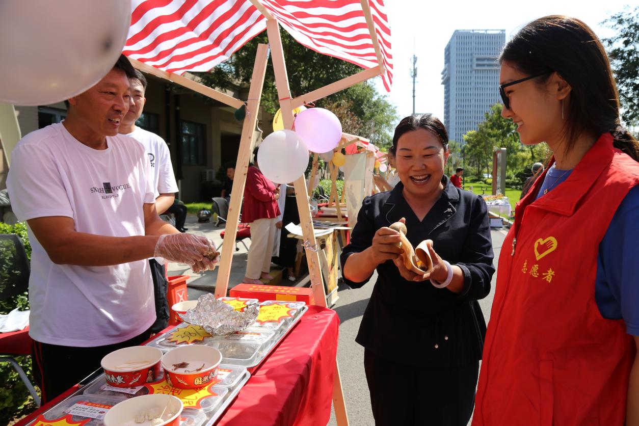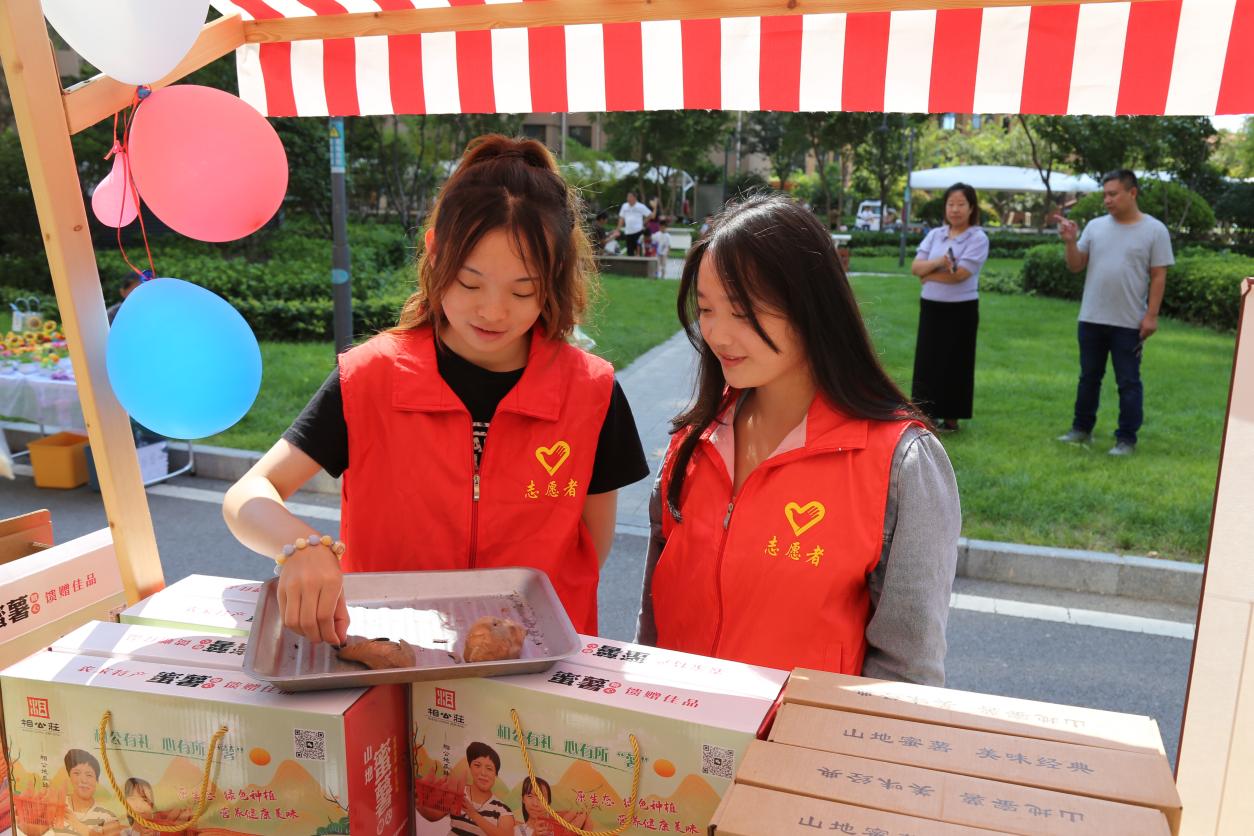 秋色连波映朝霞,桂香浮动日如华。早上八点半,志愿者早早到达碧桂园社区东区,与社区人员一起开展准备工作。身着红色马甲的志愿者将十余个摊位安置的井井有条,吹气球、挂横幅、搬运食材,志�者极协助完成摊位布置工作,成为秋日社区一道靓丽的风景线�