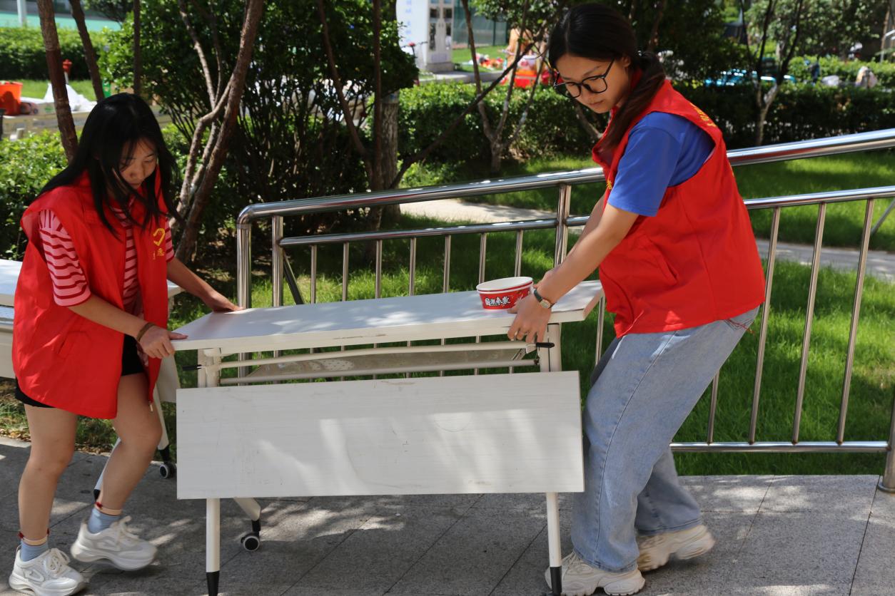 公益集市接近尾�,志愿者们搬运桌凳,收起摊位,协助社区人员清理现场垃圾,实现垃圾分类回收,以实际行动践行绿色环保精神�
