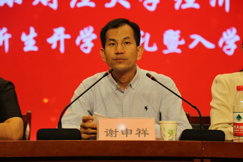 谢申祥向来自全国各地的新同学致以诚挚祝贺与热烈欢迎,介绍了山东财经大学逾七十载的辉煌历程,以及学校学院的教师队伍、专业建设、教学科研、人才培养亮点,指出正值青春年华的学子们,面对大有可为的新�代,有千万种绽放青春、点亮未来的方式。他向新生提出三点殷切期望:一是百学须先立志,树立想为志向。要树立崇高理想,勇于直面时代挑战,在推进社会主义现代化强国建设的壮阔征程中挥洒青春热血;二是学然后知不足,练就善为本领。要以学为乐,以学为荣,构建坚实广博的知识框架,努力成为视野宽广、思想深邃的复合型人才;三是学成自当有为,涵养甘为情怀。要锤炼坚韧不拔的意志,练就过硬本领,以无畏的勇气和坚定的信念,照亮前行的道路。他勉励同学们夯实基础、追求卓越,通过“想为、善为、甘为”,从而实现“万事自为,跬步千里”,共同书写新时代的辉煌篇章�