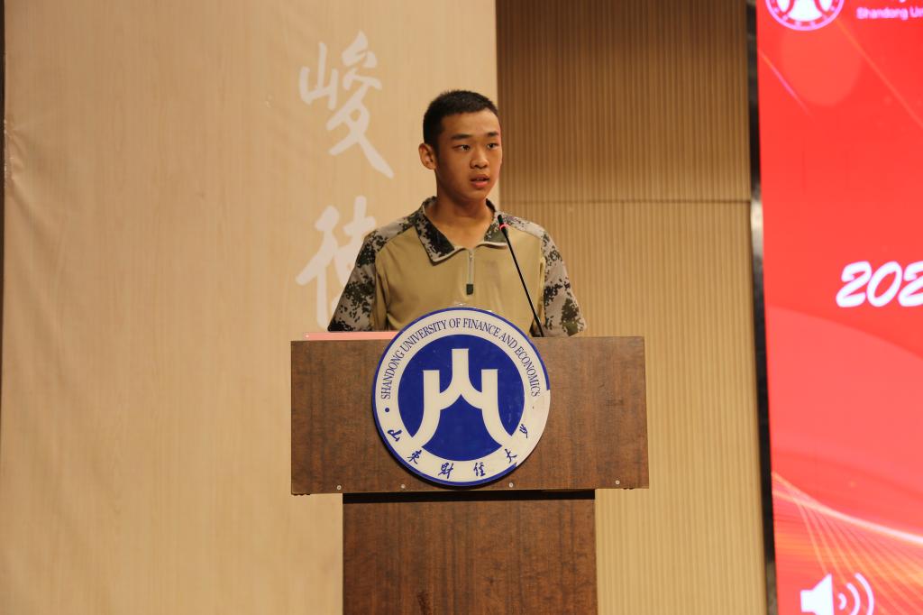 开学典礼在国歌声中拉开序。在校生代表2022级经济学1班孙傲然、新生代�2024级经济学�5班宋大勇同学先后发言�