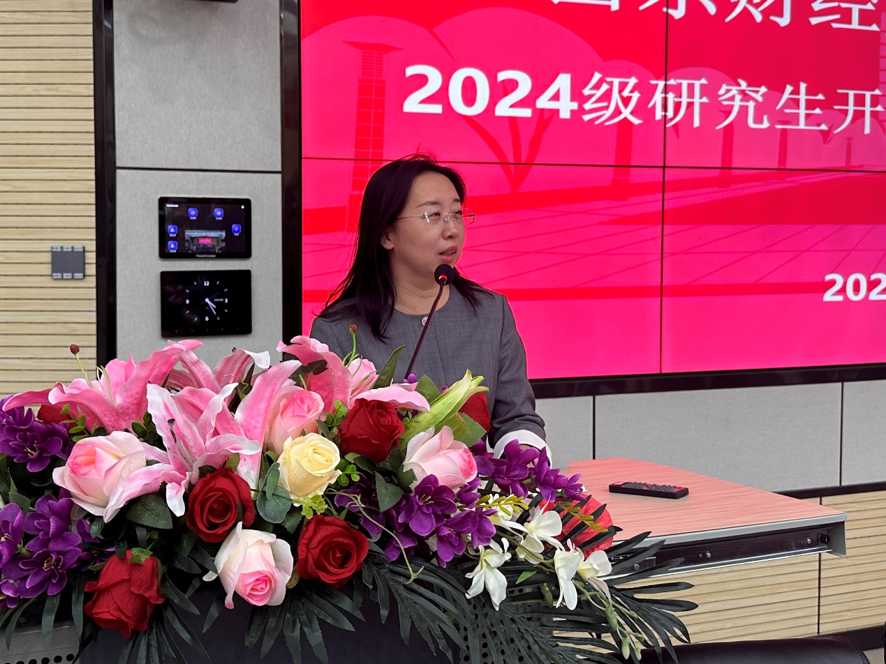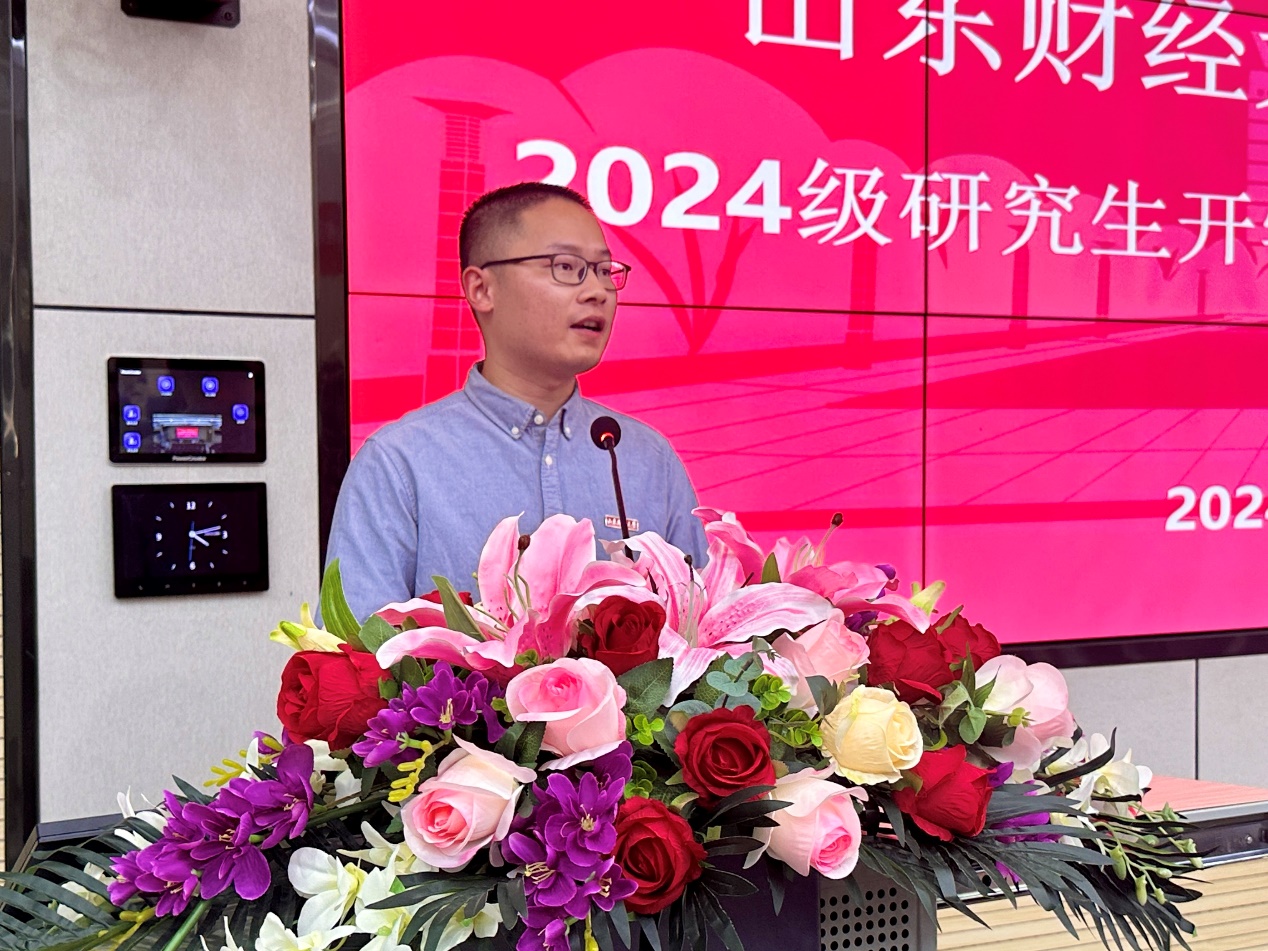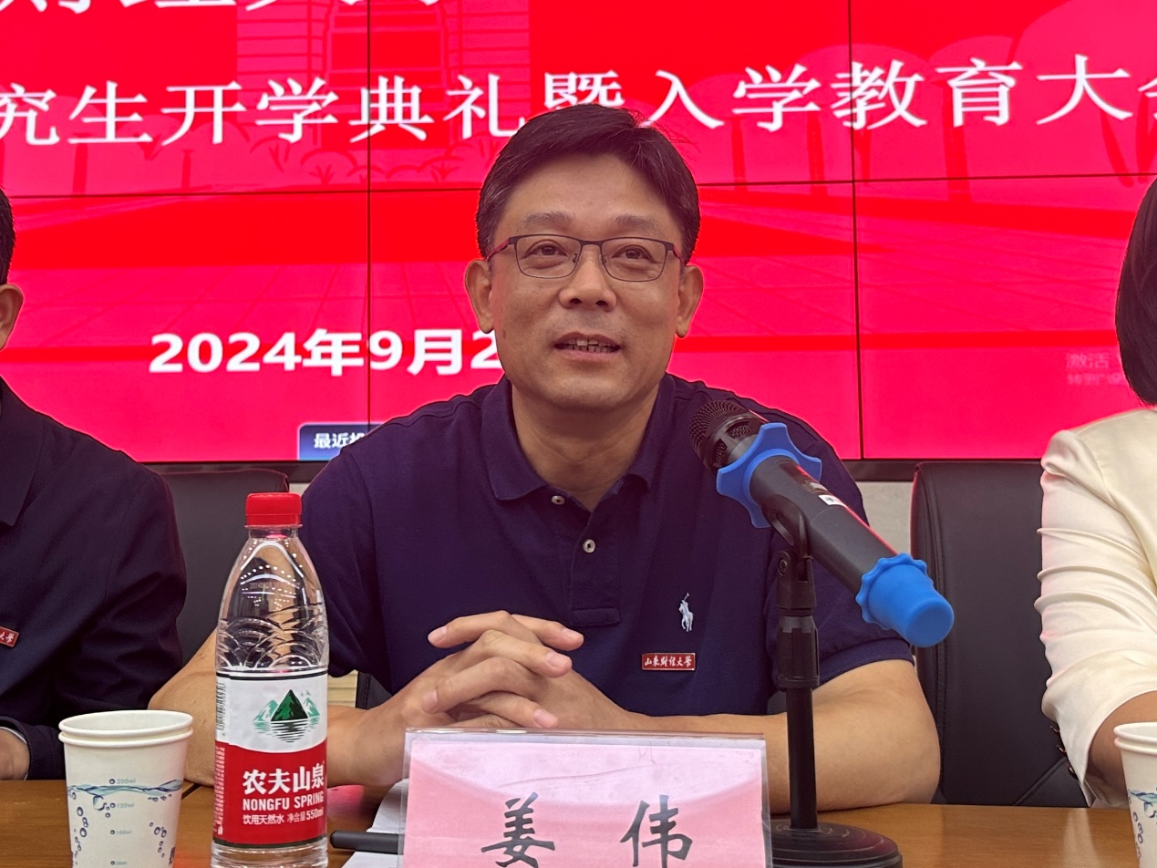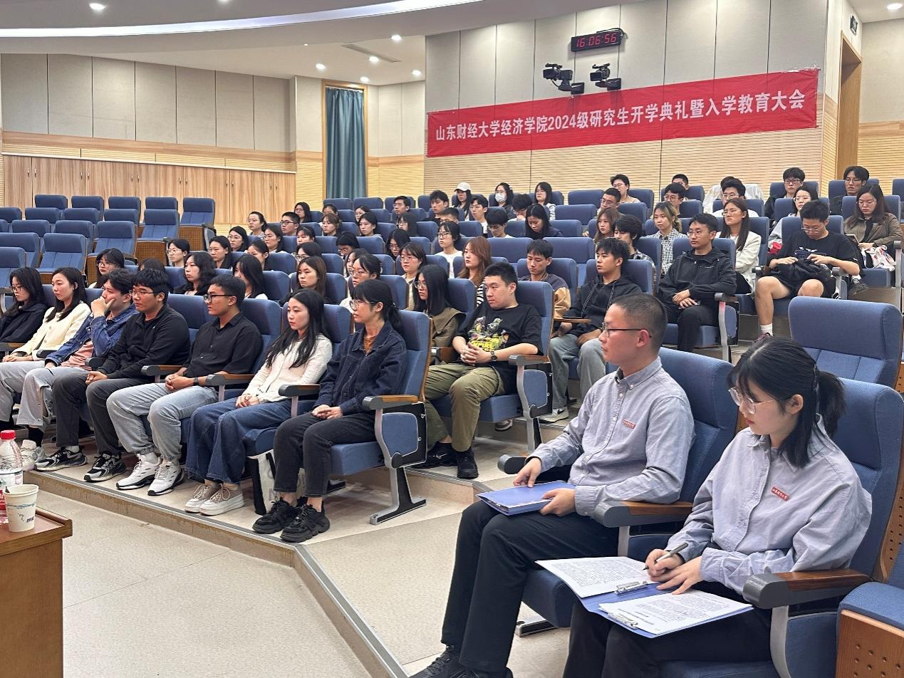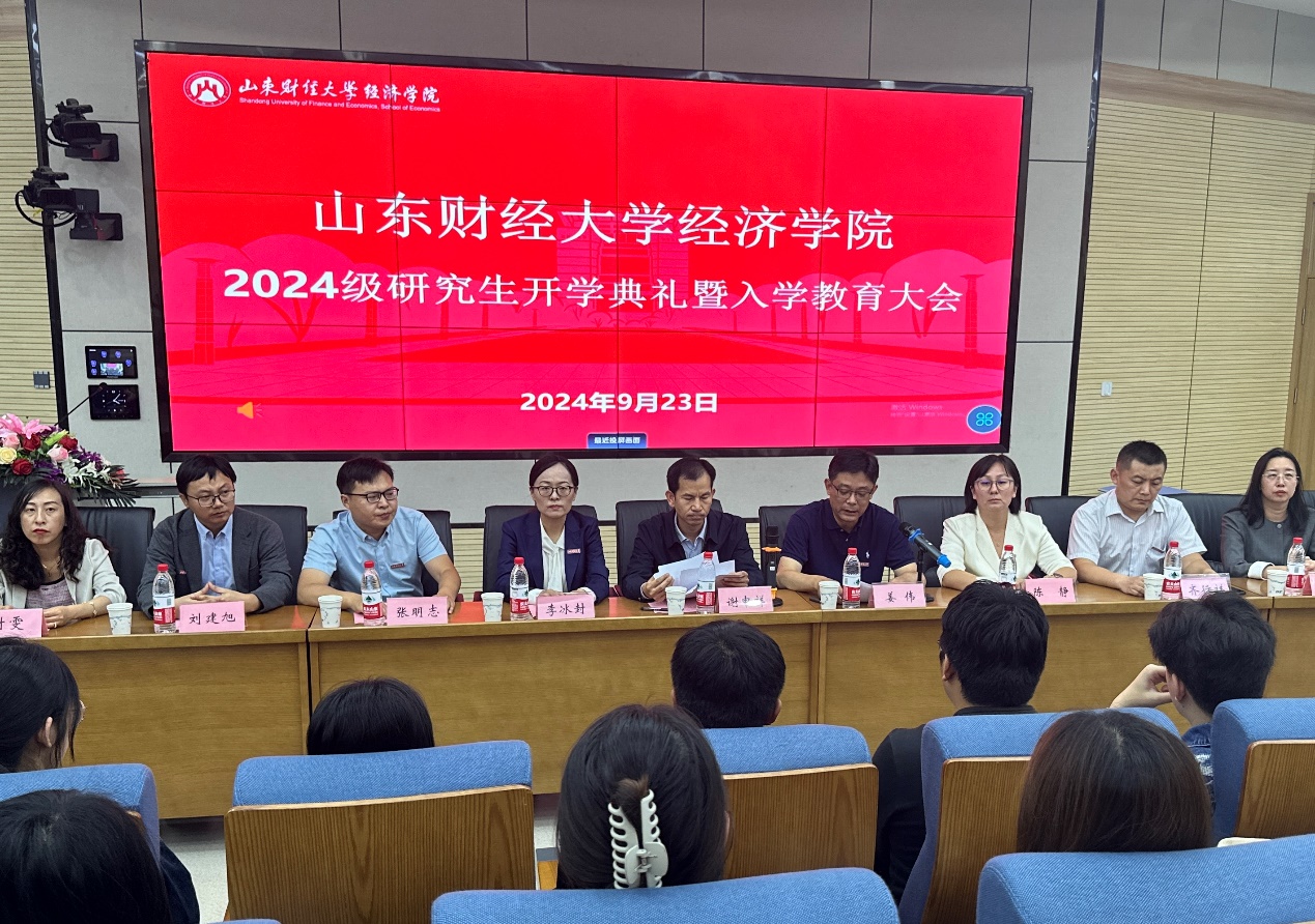 (通讯员:付雯 张驰�9�23日下午,经济学院2024级�究生开学典礼暨入学教育大会于舜耕校区一号教学楼举行。山东财经大学党委副书记、经济学院院长谢申祥,经济学院党委书记姜伟,党委副书记李冰封、陈静,副院长张明志,院长助理齐行祥、刘建旭,教师代表、博士生导师白洁出席会议。会议由陈静主持�