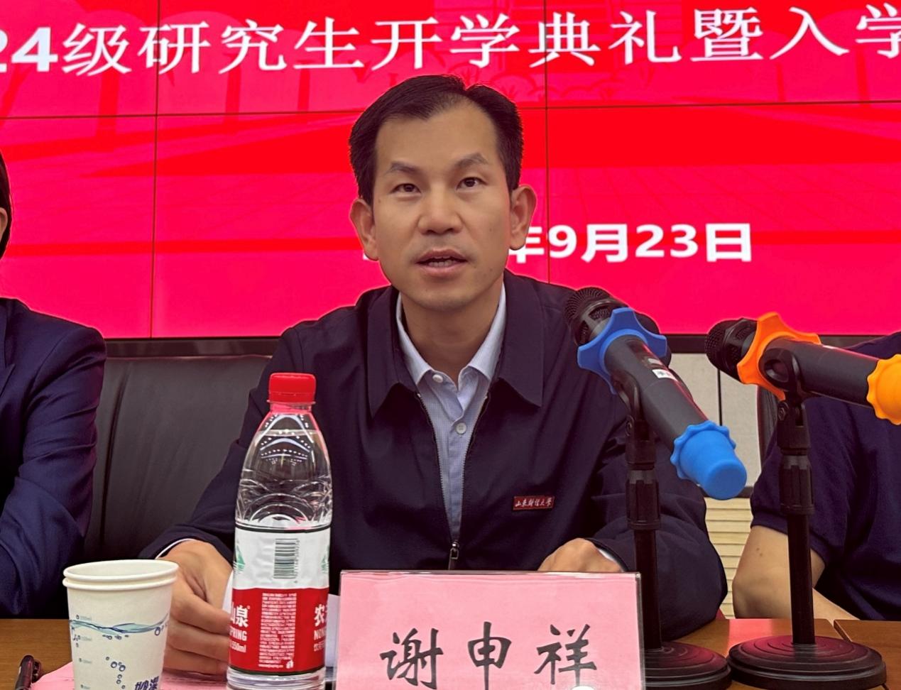 谢申祥向68位研究生新生加入经济学院表示衷心的祝贺和热烈的欢迎,介绍了学校和学院的发展历史,以及经济学院在学科建设、专业特色、教学团队和人才培养等方面的优异成绩。他表示,置身全面推进强国建设、民族复兴伟业的关键时期,同学们生逢其时,重任在肩,责无旁贷。他�2024级研究生提出五点期望:一是志存高远,锚定方向,在胸怀家国中勇担时代使命;二是善学砺能,博闻强识,在笃学不怠中点亮智慧之光;三是厚德载物,心有大我,在协作奋进中体悟竞合之道;四是敬畏规范,抵制不端,在涵养诚信中弘扬学术正气;五是知行合一,善作善成,在履践致远中锻造真知真能�