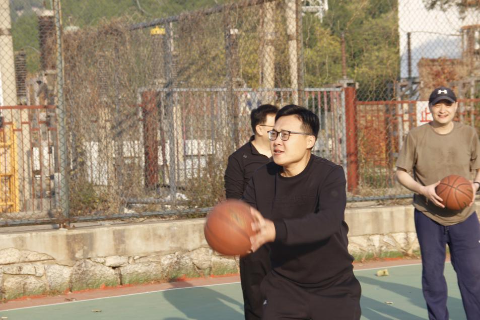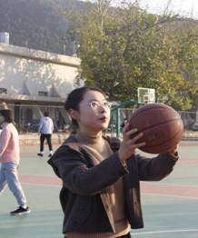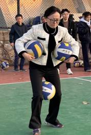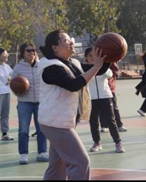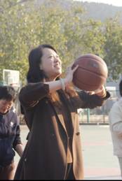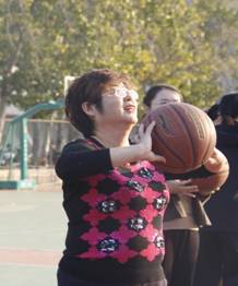 篮球投准——老师们神情专注,身姿轻盈,用力抛掷,篮球在空中划�一道美丽的弧线�