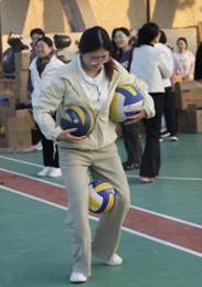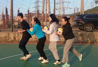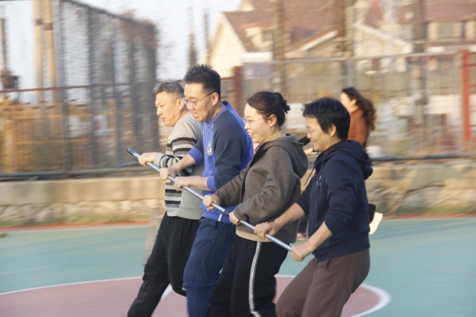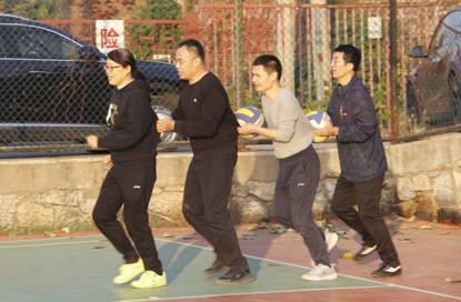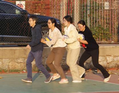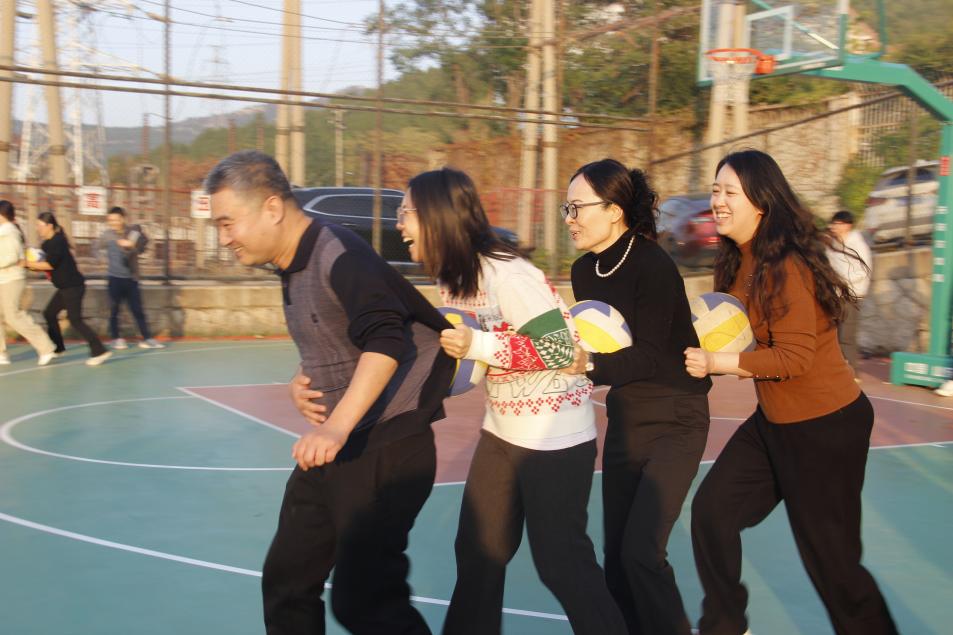 砥砺前行——教师们相互夹球,灵活向前。每次移动都是对力度和速度的双重考验�