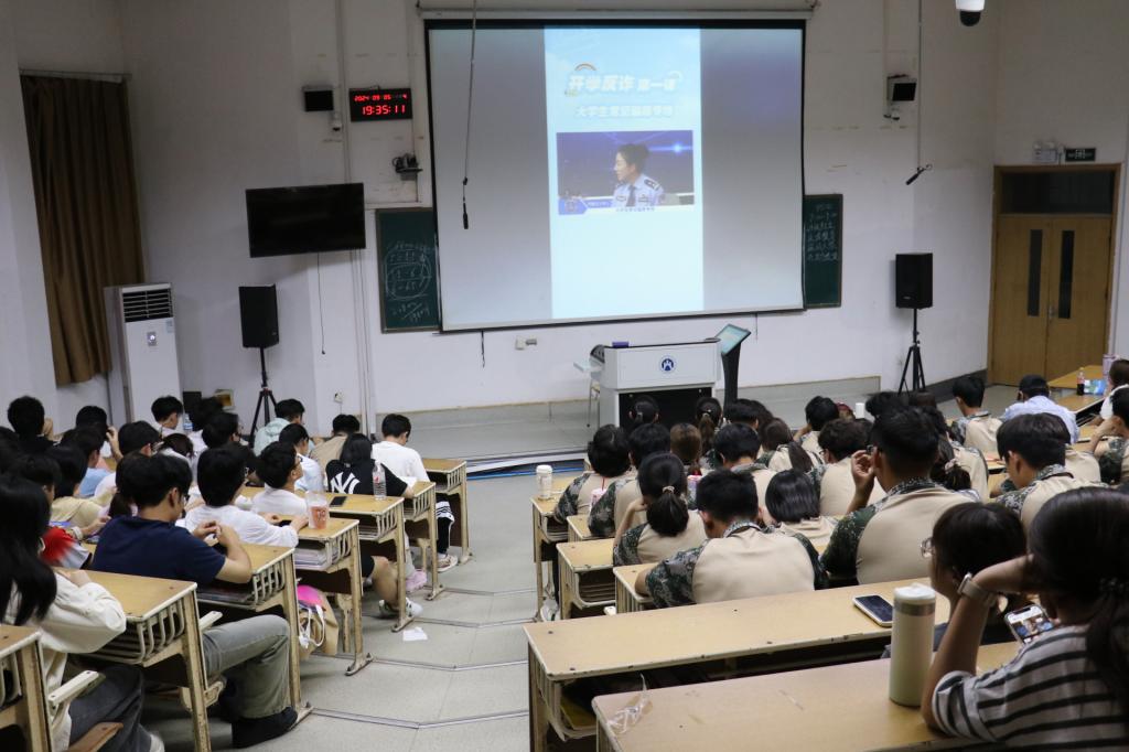 为深入学习贯彻习近平总书记关于网络强国的重要战略思想,积极响应国家关于加强网络安全与反诈骗教育的号召,普及网络反诈知识,提高学生自我保护能力�9�5�19:30,经济学院于圣井校区7号教学楼和舜耕校区第二阶梯教室组织观看了2024�"开学反诈第一�"线上直播�2024级全体学生到场参加�