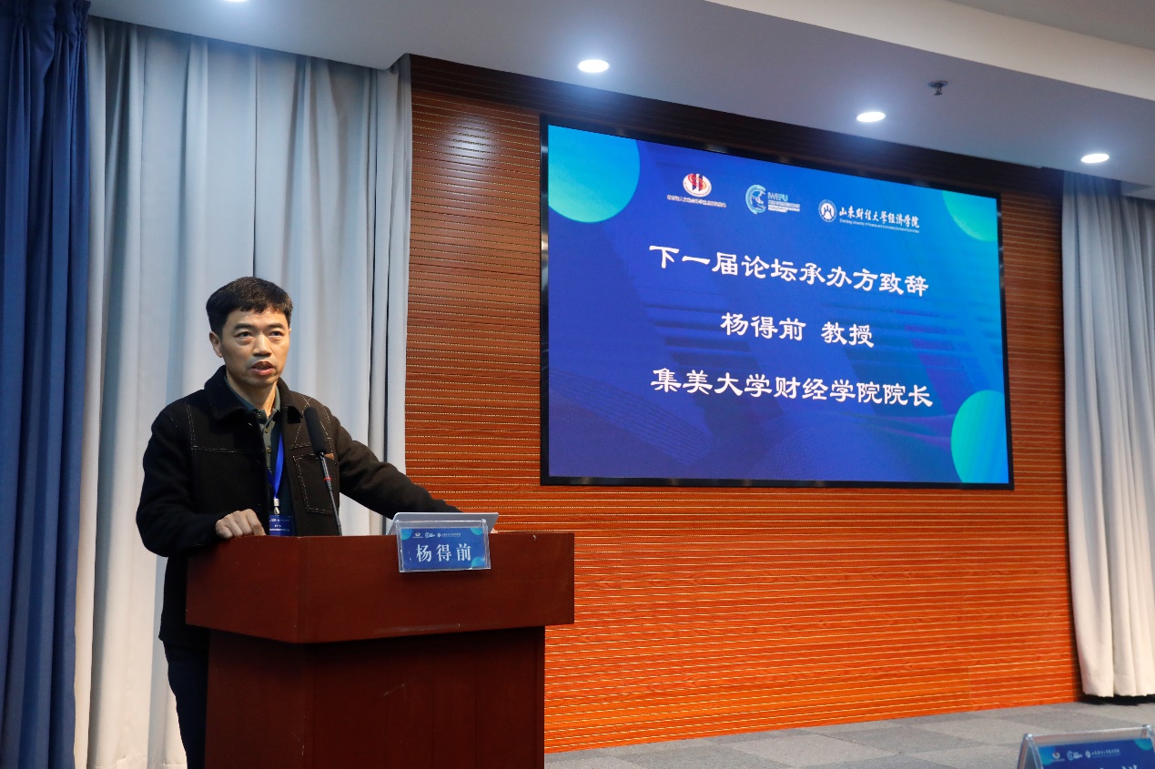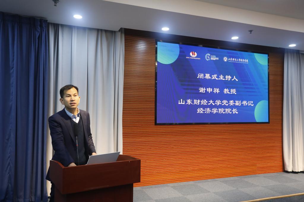 24日上午的闭幕式环节由谢申祥教授主持。复�大学世界经济研究所副所长沈国兵教授做了较为全面的会议总结,并感谢山东财经大学经济学院作为承办方在会议期间的优质会议服务工作。集美大学财经学院院长杨得前教授做了下一届主办方致辞,并热情、诚挚地邀请各位专家学者将于明年上半年相聚厦门、莅临美丽的集美大学进行学术论道。最后,谢�祥教授宣布了第十一届中国世界经济学科专家和中青年学者学术论坛顺利闭幕�