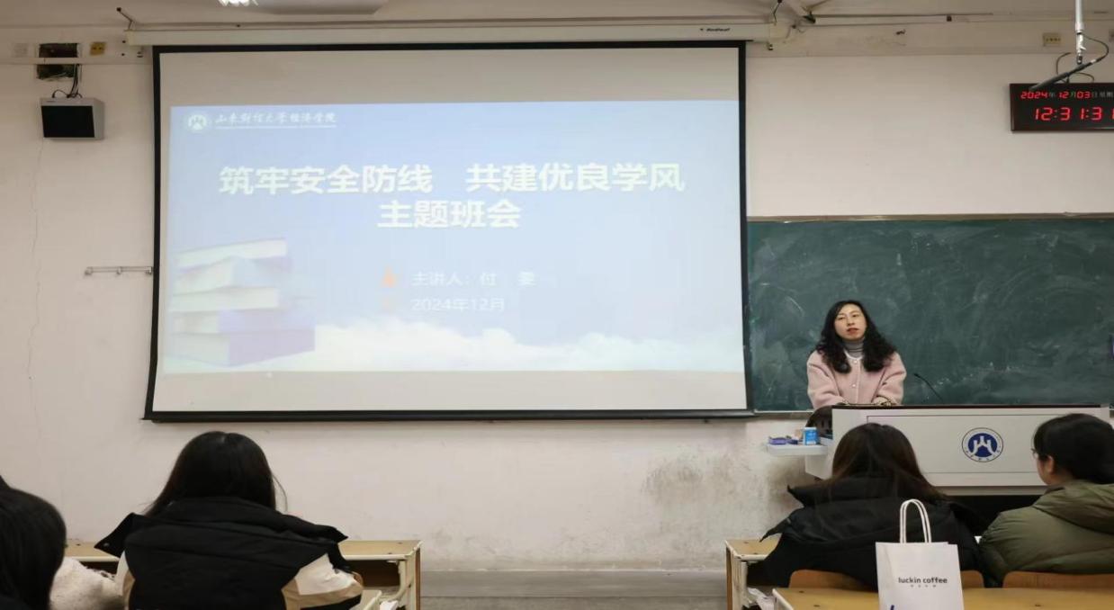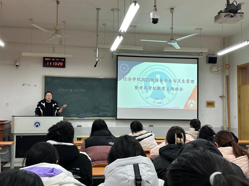 (通讯员:刘文畅) 为夯实学院学风根基,严肃风考纪,筑牢安全防线,营造优良的学习氛围,加强学生安全教育与管理,确保学期末各项工作顺利进行�2024�12�9日至12�17日,经济学院各班级召开期末学风考风暨卫生安全教育主题班会,辅导员及全体学生参加主题班会�