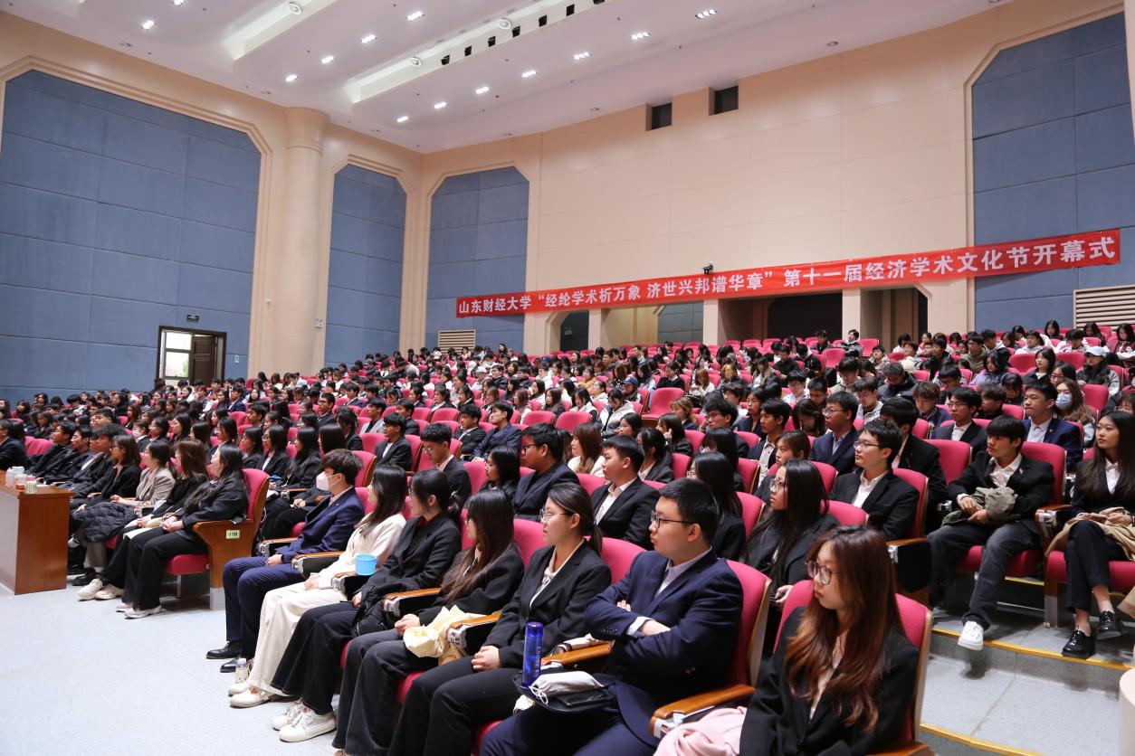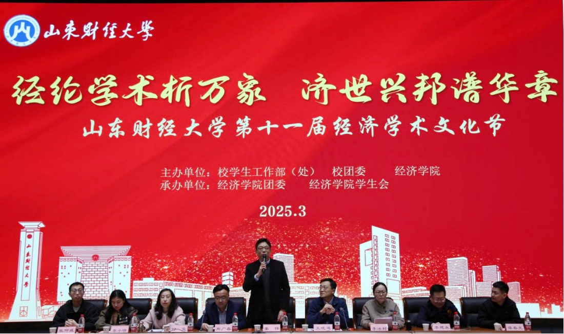 3�27日,由校学生工作�(�)、校团委和经济学院主办,经济学院团委、学生会承办的山东财经大学“经纶学术析万象,济世兴邦谱华”第十一届经济学术文化节开幕式于圣井校区图书馆报告厅举�。经济学院党委书记姜伟,校团委书记王晓迪,校学生工作处副处长周广春,经济学院党委副书记李冰封出席开幕式。开幕式由经济学院团委书记付雯主持�