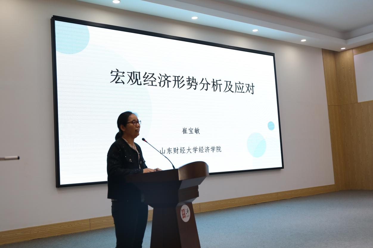 经济学院副院长崔宝敏教授在交流会上做济形势讲座。她对国际经济宏观形势进行了全面解读,分析全球经济发展面临的挑战与机遇,并合当前经济环境,为民营企业的发展提出切实可行的应对策略,助力民营企业在复杂多变的市场中稳健前行�