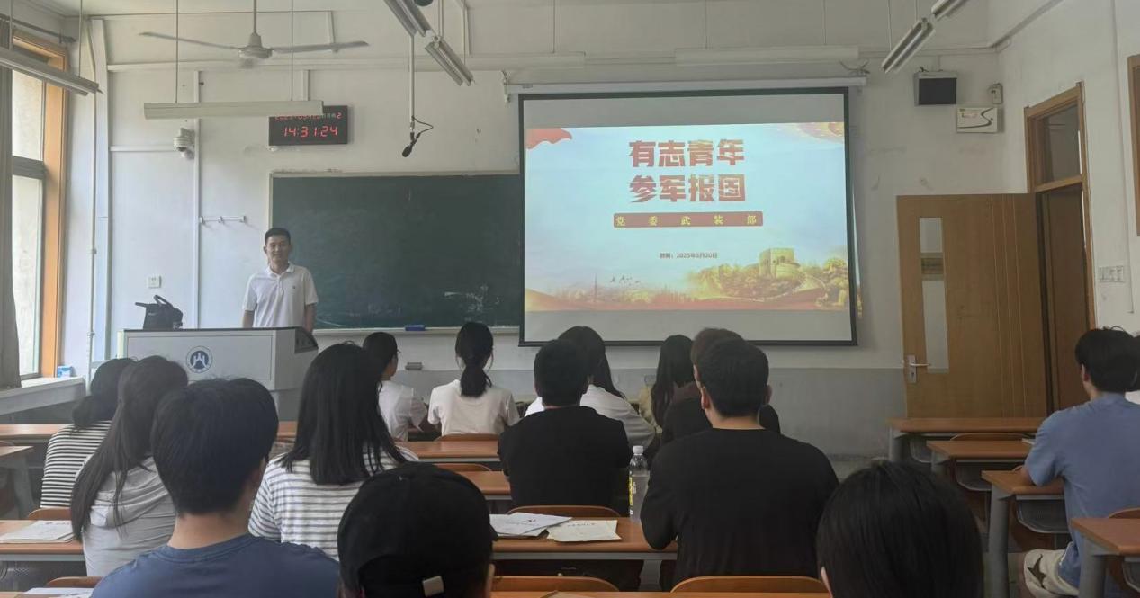 青春献国防,热血筑军魂。为积极响应国家征兵政�号召,激发青年学子参军报国热情,5�20日下午,经济学院在舜耕校区二号教学楼举办“有志青年,参军报国”毕业班大学生征兵宣讲活动。本次宣讲会由经济学院辅导员谭春光主讲,经济学院2021级毕业班同学代表参加�