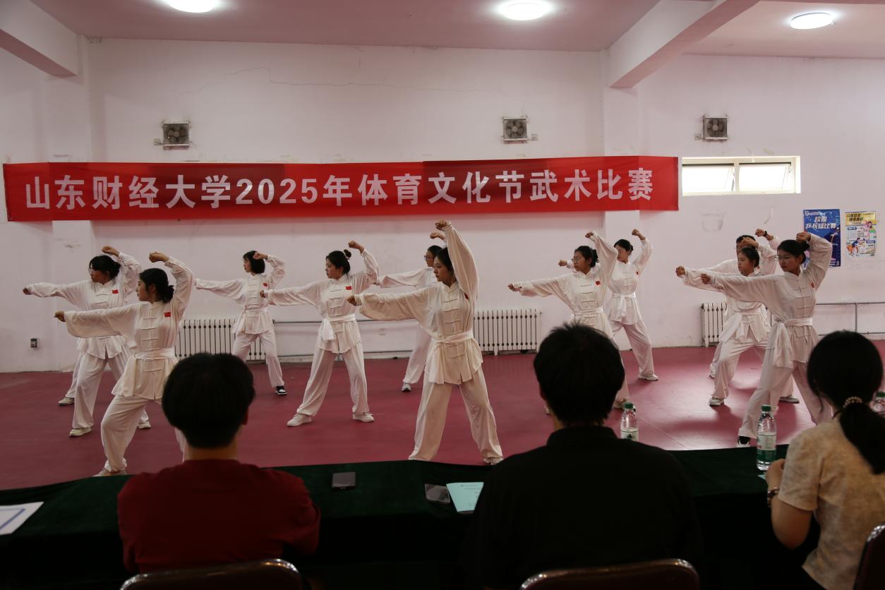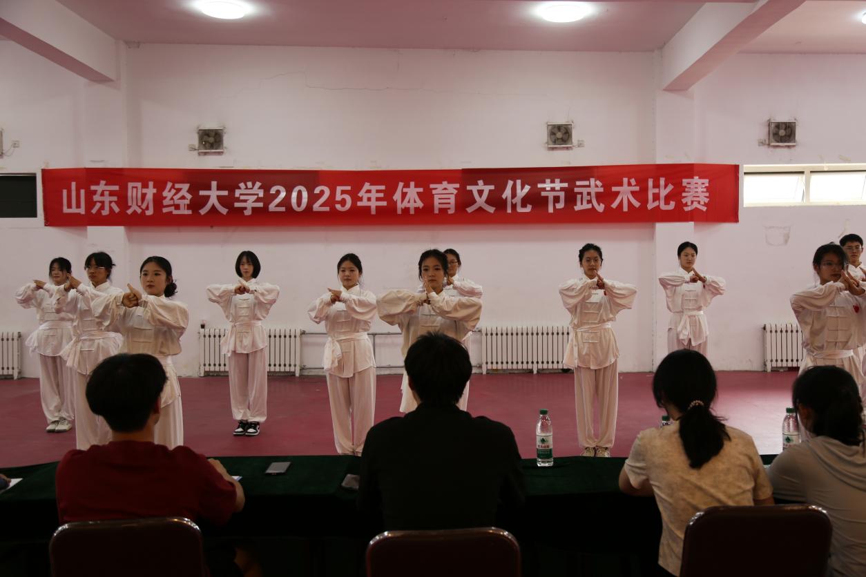 为传承武术文化,强健学生体魄�5�22日,�山东财经大学体育学院、学生工作部(处�、校团委、教务处联合主办的山东财经大�2025年体育文化节武术比赛在山东财经大学章丘校区乒乓球室举办。本次比赛吸引了来自各学院的数百名武术爱好者参与,现场气氛热烈,精彩纷呈�