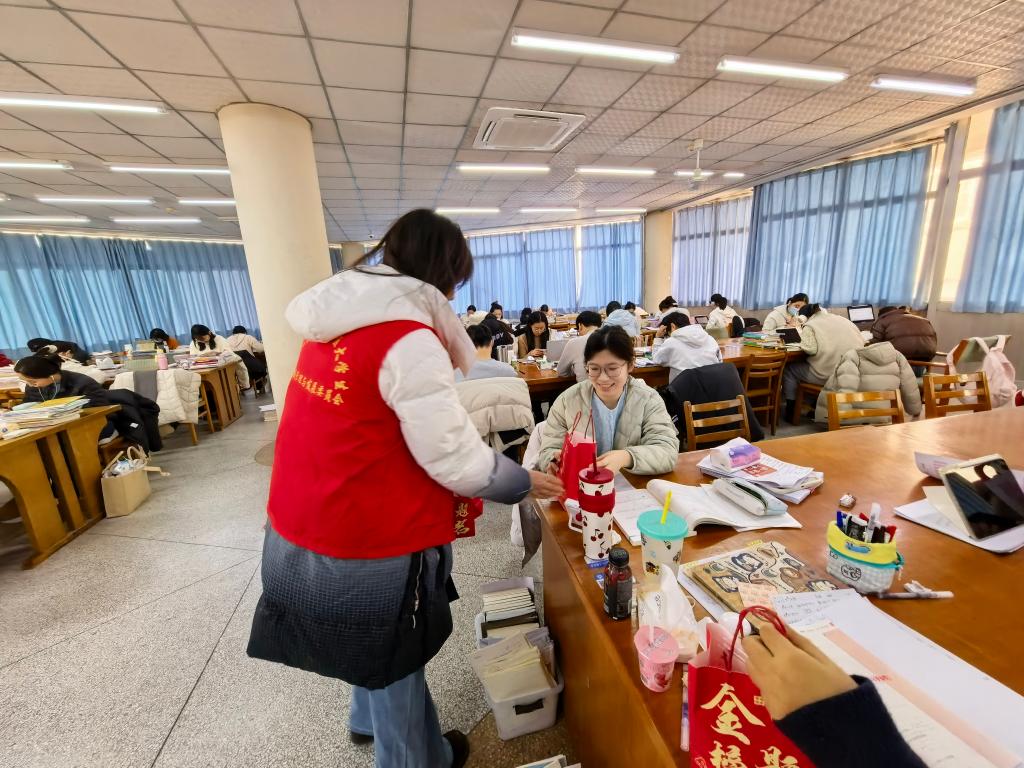 寒冬已至,研途奋进�12�14日至15日,山东财经大学燕山校区与舜耕校区的图书馆、教学楼内暖意涌动。在学校学生工作部的统筹部署下,我院积极组织志愿者开展“冬日暖阳,研途同行�送祝福活动,�全力备战2026年全国硕士研究生考试的学子们送上寒冬里的专属关怀与冲刺祝福�