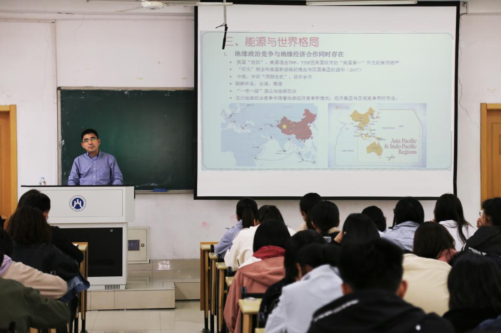 郭学堂教授“能源、地缘政治经济与世界格局”为题,详细地介绍了能源通过地缘经济对世界格局进行重塑的相关内容。首先,郭教授以“全球能源市场新变化”为例展开讲座内容,详细解读能源、能源地缘经济以及能源安全等关键词的含义,分析了能源地理分布的影响、国家外交政策的能源地理表现以及特定形势下的政治和军事行为等内容。随后,郭教授从地缘经济学的角度阐述了能源地缘政治经济结构和“海上丝绸之路”倡议对周边国家的影响等相关问题。最后,郭教授通过地缘政治竞争与地缘经济合作分析了能源安全、能源结构对世界格局的影响�