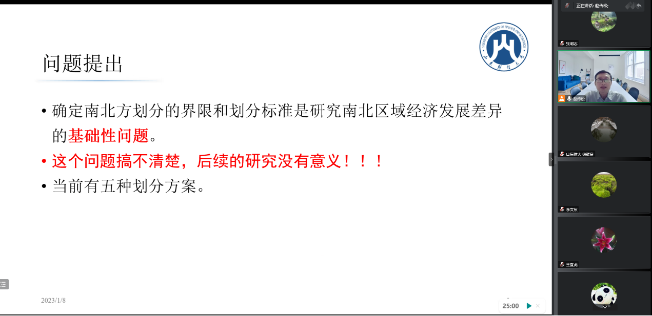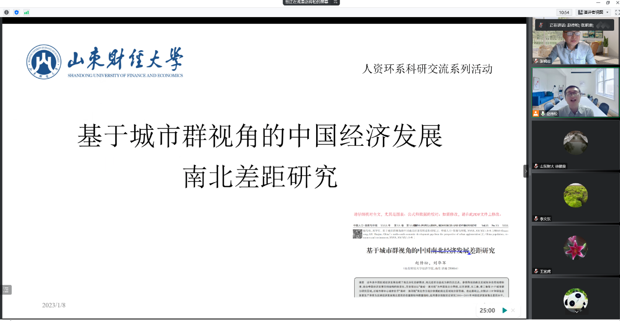 为进一步加系部科研工作的交流与沟通,创造积极良�的科研氛围,人口、资源与环境经济学系�2023�1�8日晚在线召开科研学术交流会。会议由系副主任赵传松主持,学院副院长张明志、部分专业教师参与了此次交流会�