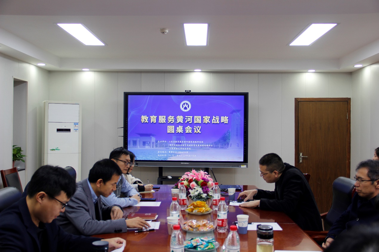2023�11�12日上午,由山东省教育服务黄河国家战略研究陀黄河流域经济绿色低碳转型发展协同创新中心、山东财经大学经济学院主办的“教育服务黄河国家战略圆桌会议”在山东财经大学舜耕校�1208会议室举行。副校长谢申祥出席并主持会议。云南财经大学首席教授、教育部长江学者、经济学院院长陈昆亭教授,山东大学黄河战略研究院执行院长余东华教授出席会议�