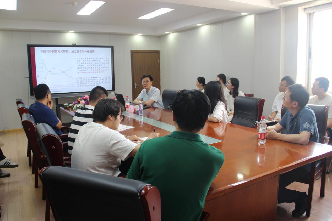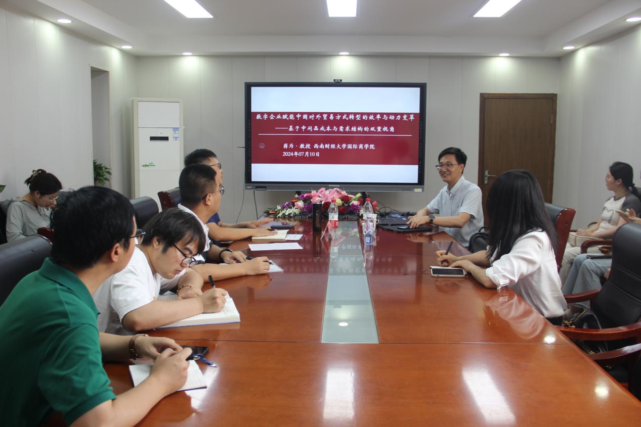 2024�7�10日,由我院主办的明德经济讲堂在舜耕校区办公楼1208会议室顺利举行。本期明德经济讲堂邀请到西南财经大学国际商学院蒋为教授担任主讲,报告会由经济学院副院长张明志主持,我院部分师生参与本次告会�