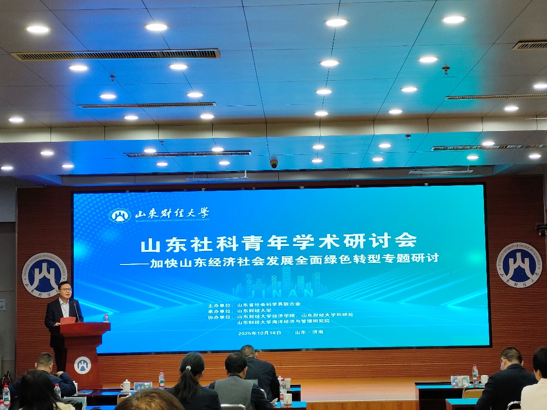 10�18日,由山东省社会科学界联合会主办,山东财经大学承办,山东财经大学经济学院、科研处、海洋经济与管理研究院协办的山东社科青年学术�讨会2025——加快山东经济社会发展全面绿色转型专题研讨在我校成功举办。开幕式由山东财经大学经济学院院长殷克东教授主持并致开幕辞�