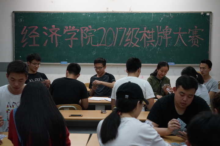 (通讯员:白战� 孙俏俏)4�21日下�18�30,经济学院于圣井校区敏行楼B5-401�402�403教室举行“以棋会友,棋乐无穷”棋牌大赛,比赛由院学生会社团部主办,经济学院棋牌协会承��16�17级各班选手参加比赛��