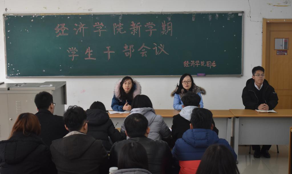 (通讯员:杨晓雯)为做好新学期学生工作,理顺工作思路,提高工作效率,经济学院�3�6日中�12�40,在圣井校区敏行楼B5307召开新学期主要学生干部工作会议。经济学院党委秘书李冰封、辅导员付雯、朱海林老师出席会议�2016�17级全体班长、团支书及学生会圣井校区第一副部参加会议�