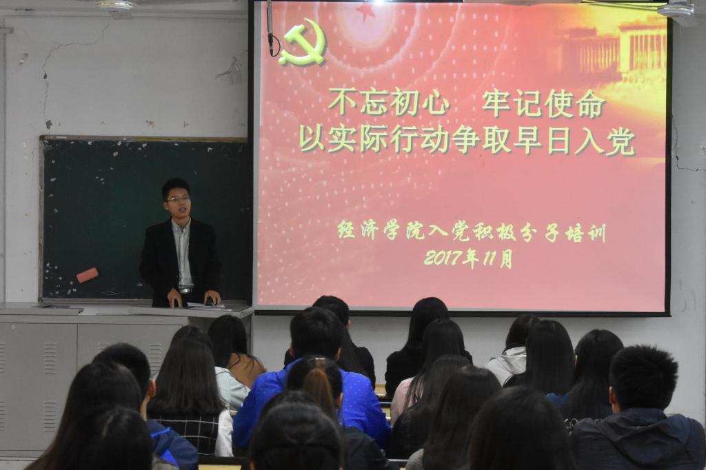 10�16日下�13:00,经济学党员发展对象培训大会于舜耕校�1301召开。会议由院党委秘书李冰封主持。团委助理尚书、冯晓玢,本学期全体党员发展对象以及全体团支部书记参加了此次会议�