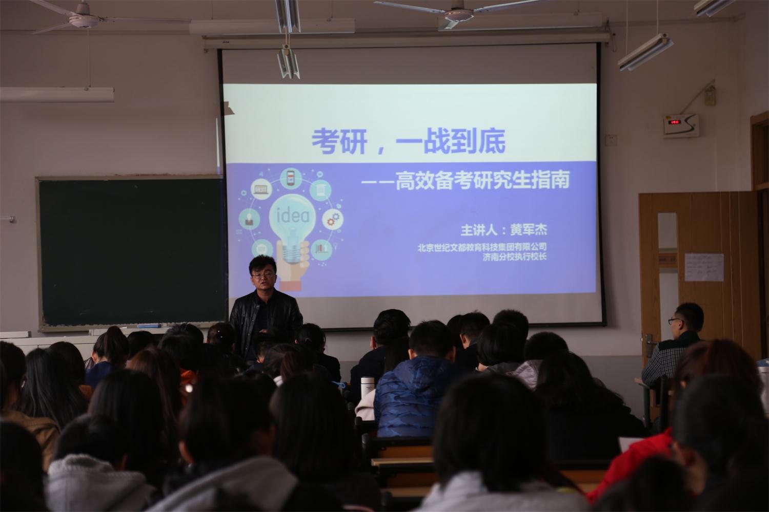 (通讯员:杨晶、刘如玉�11�17日下�2�00,经济学院于舜耕校�1404教室举办“考研,一战到底——高效备考研究生指南”讲座,北京世纪文都教育科技集团有限公司济南分校执行校长黄军杰主讲,我院14�15�16级部分同学参�,我院科级辅导员付雯主持�