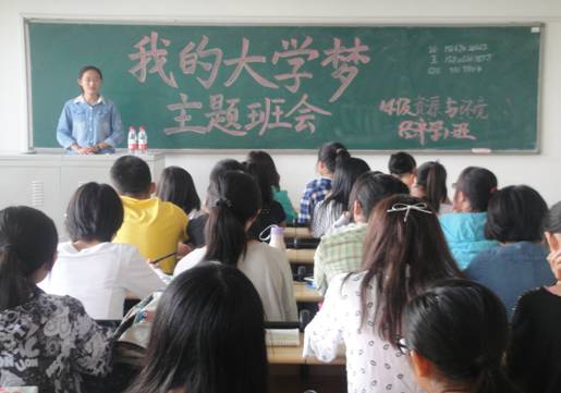 9�13�-15日,经济学院2014级七个班级于圣井校区敏行楼分别召开“我的大学梦”主题班会。会议由团总支新生辅导员付雯、陈�君老师主持�
