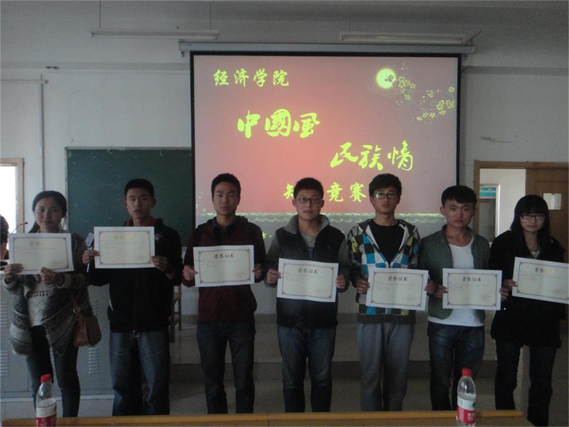 竞赛以班级为单位分成8个代表队,每�8人,其中参赛选手3人,亲友�5人。“限时问答”环节中,参赛选手认真审题,迅速组织答案,争分夺秒答题;“听词猜谜”、“看图识民族”环节中,选手根据关键词和大屏幕插图抢答竞猜,沉着冷静,思维缜密,从容应答;在才艺展示环节,各队亲友团为大家带来精彩纷呈的表演,洋溢着浓郁的民族风情,少数民族语言诗歌朗诵铿锵有力、掷地有声,歌曲演唱婉转悠扬、感情充沛,赢得在场同学们的热烈掌声。经过紧张激烈的角逐,13级农村区域与发展班获得一等奖,经济学一班、四�获得二等奖,资源与环境经济学班、经济学三班和二班代表队获得三等奖,经管一、二班代表队获得优奖�