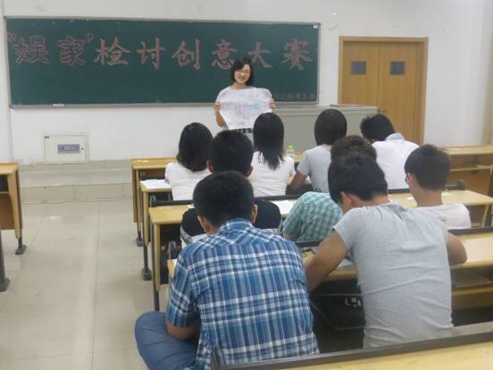 5�22日晚6�30,由我院学生会主办的“娱家”检讨创意大赛在圣井校区敏行�B5106教室举办。我院圣井校�11级各班学生代表参加本次大赛,我院学生会相关负责人担任评�