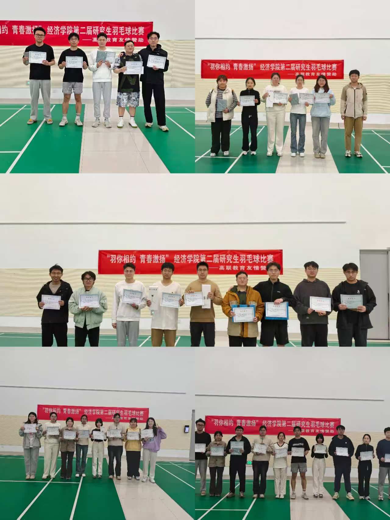3月25日-3月26日,经济学院在章丘校区羽毛球馆举办“‘羽’你相约 青春激扬”第二届研究生羽毛球比赛。经济学院2025级研究生学子齐聚赛场,以球会友、以赛聚力,在男双、女���、混双、男单、女双五个项目的比拼中挥洒汗水,用精彩的竞技展现经济学院研究生学子昂扬向上、奋勇拼搏的青春风貌。