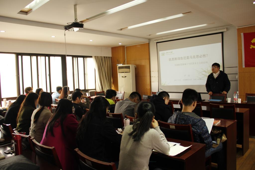 3�15日下午,�江大学卢江副教授在天舜大�六楼会议室为全院师生带来一场精彩的学术报告,题为�凯恩斯谆告还是马克思必然——资源配置视域下当代资本主义的走�》�