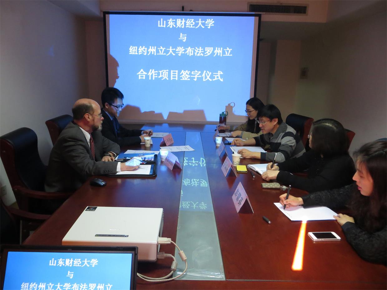 山东财经大学与纽约州立大学布法罗州立分校有良好的合作基础,合作协议的签署预了双方将�更高水平、更高层次上展开国际教育双向、双赢的交流与合作,扩大两校的国际影响力,增进双方了解,创造新的发展契机,同时,为两校师生出国深造,丰富学术背景和生活经历,提高自身综合素质提供途径�