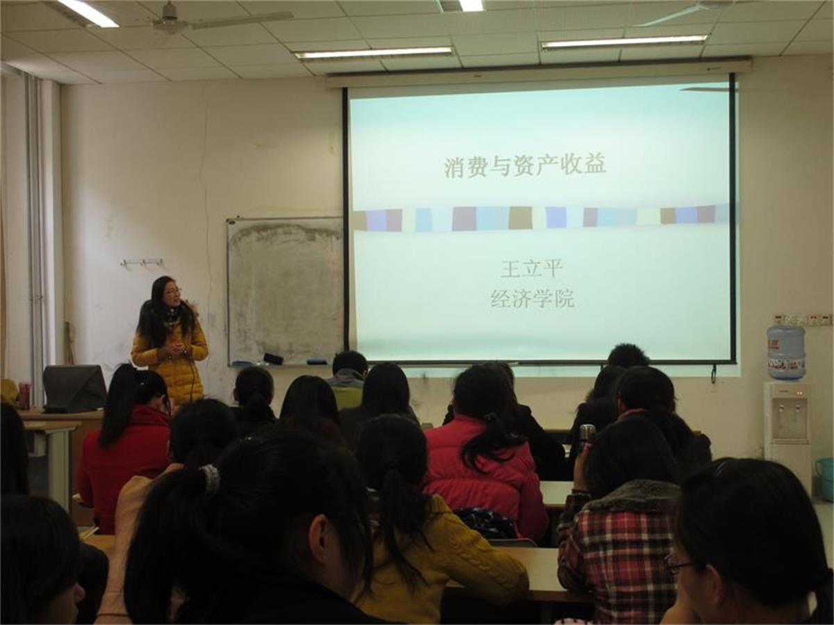 11鏈�29鏃ヤ笅鍗�2:00锛岀粡娴庡闄㈢帇绔嬪钩鏁欐巿鍦ㄨ垳鑰曟牎鍖虹爺绌剁敓妤�106鏁欏鍋氫簡涓婚涓衡滄秷璐逛笌璧勪骇鏀剁泭鈥濈殑绮惧僵璁插骇銆�
