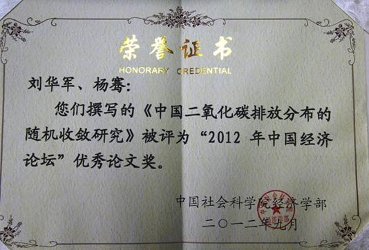 本次论坛为获得优秀论文奖的中青年学者颁发了证书。论坛围� “城市转型与绿色发展”的主题,向全社会公开征文,共收到符合征文要求的论�110篇。经过专家评审组的评审,12篇论文获得优秀论文奖,其中,我院刘华军副教授撰写的《中国二氧化碳排放分布的随机收敛研究—基于地区、部门和行业层面数据的经验检验》获得优秀论文奖。此外,还有16篇论文获得优秀论文提名奖�
