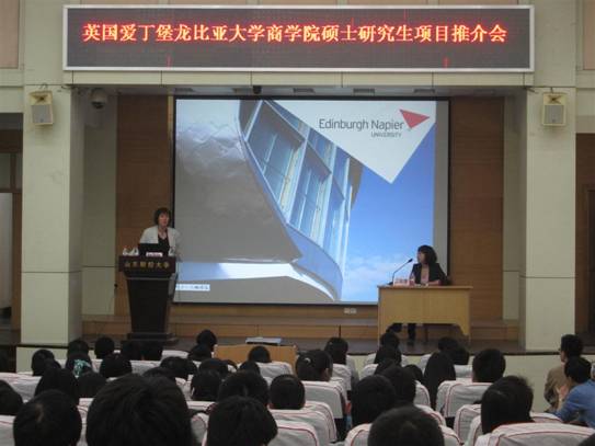 座谈会后�Mary Fischer博士为经济学院师生作了关于苏格兰文化、产业和教育的讲座。龙比亚大学所在地爱�堡是欧洲第三大金融中心,金融业是其支柱产业,金融、财政等经济类专业是龙比亚大学的重点专业,学生就业和发展前景良好。讲座现场,经济学院的学生们就出国留学相关问题与Mary Fischer博士进行了探讨�
