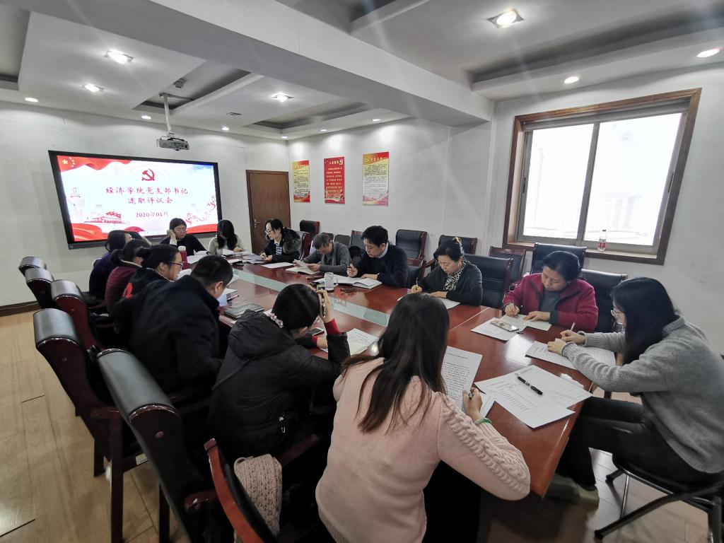 (通讯� 李冰封)为深入学习贯彻习近平新时代中国特色社会主义思想,进一步压�基层党支部书记履行全面从严治党第一责任人责任,经济学院召开2019年度�支部书记履行全面从严治党责任和抓基层党建述职评议会议。会议由党委副书记高峰主持,党委书记姜伟、副书记仵颖涛、副院长彭留英,全体党支部书记参加了会议�