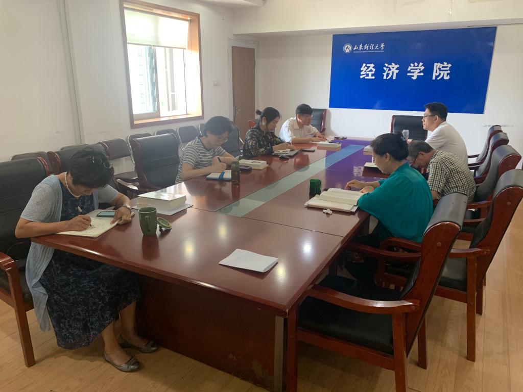 经济学院党委高度重视这次专题学习班的重大意义,认真组织理论学习�8�31日由干部自学�9�1日�2日,经济学院党委在办公楼1208召开党委理论中心组会议,进行了两天专题学�。在党委理论中心�会议上,班子成员围绕《习近平治国理政》、《山东省教育厅关于组织申报山东省高水平大学和山东省高等学校高水平学科的通知》、《山东省人民政府办公厅关于印�<山东省高水平大学建设实施方案>的通知》认真学习,并做好读书笔记。每位成员轮流领读,其他成员讨论交流�