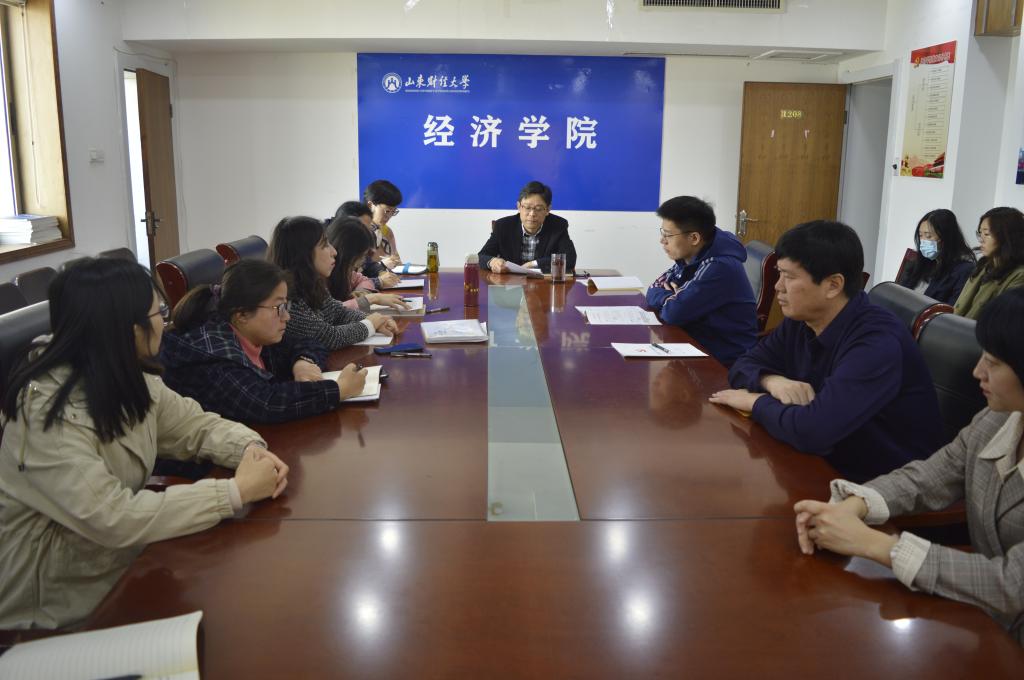 (李冰封 王琦�3�31日上午,为深入学习贯彻习近平总书记在党史学习教育动员大会上的重要讲话精神,认真落实学校党委工作要求,经济学院在舜耕校区办公楼1208会议室召开党史学习教育动员会,对学院的党史学习教育进行全面动员和部署。会议由党委书记姜伟主持,学院各党支部书记及党员代表参加�