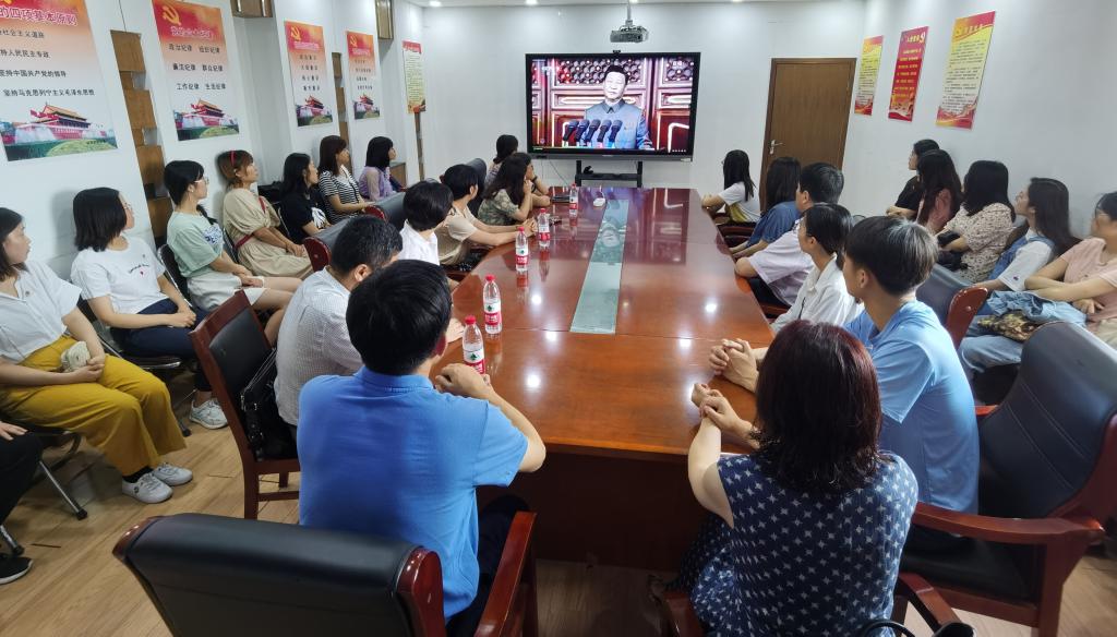 7�1日上�8时,庆祝中国共产党成�100周年大会在北京天安门广场隆重举行。中共中央总书记、国家主席、中央军委主席习平发表重要讲话。经济学院于舜耕校区办公楼1208会议室组织教工、学生党�30余人观看庆祝中国共产党成�100周年大会直播。全�12个教工、学生党支�也采取集中观看和自主观看相结合的方式组织收听收看�