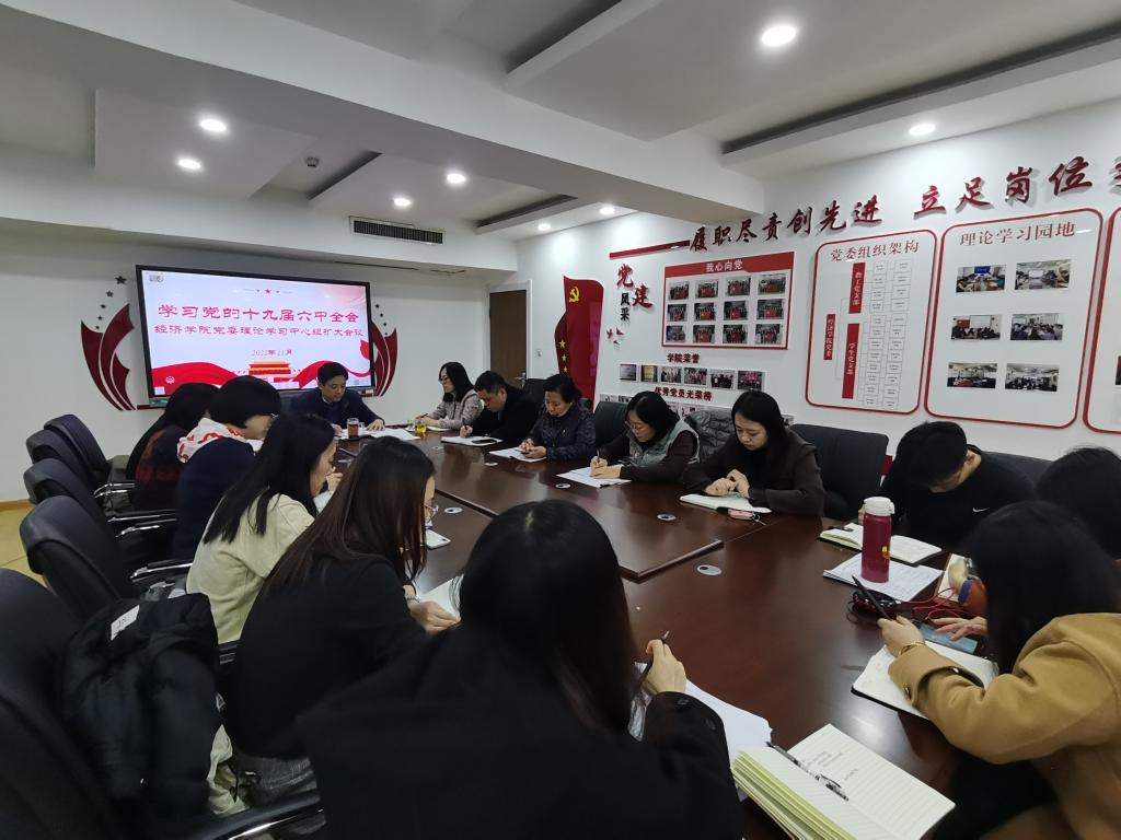 (李冰封 王琦 曹静静)2021�11�24日下午,经济学院召开党委理论学习中心组扩大会议,专题学习十九届六中全会会议精神,会议由党委书记姜伟主持,党委领导班子成员和全体�支部书记参加学习研讨�