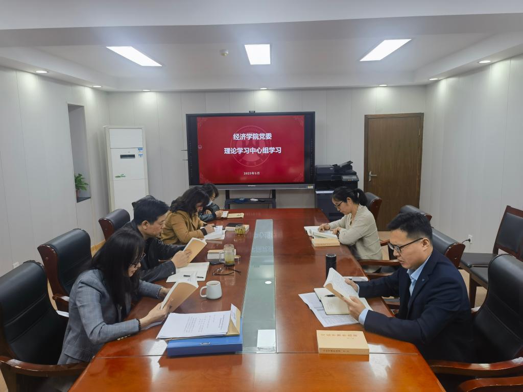 5�5日上午,经济学院党委�论学习中心组集体学习《习近平著作选读》第一卷中《实干才能梦想成真》、《文明因交流而多彩,文明因互鉴而丰富》篇目。会议由党委书记姜伟主持学习,全体中心组成员参加了学习�