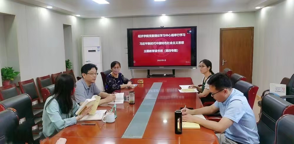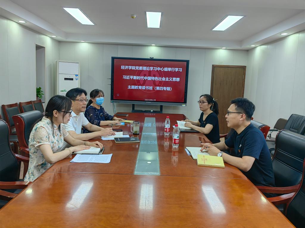 6�8日�9日,经济学院党委理论学习中心组主题教育读书班以“正确理解和大力推进中国式现代化”为专题进行第四次集体学�,重点系统学习了《习近平新时代中国特色社会主义思想学习纲要》一书和5�29日习近平总书记在中共中央政治局第五次集体学习时关于教育强国建设的重要论述。校主题教育工作办公室刘思峰、李亚列会指导。读书班由党委书记姜伟主持,全体班子成员参加学习�