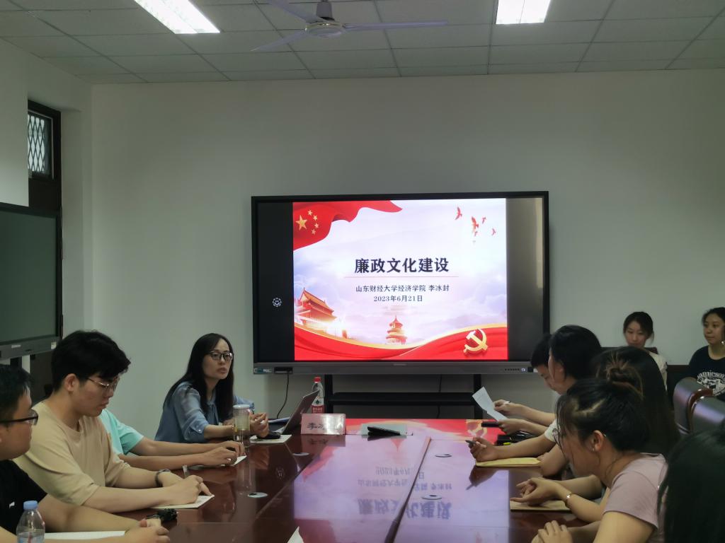 (通讯 李冰� 谭春光)�深入学习贯彻党的二十大精神,进一步加强新时代廉政文化建设工作,推动全面从严治党向纵深推进�2023�6�21日,经济学院党委副书记李冰封以“廉政文化建设”为主题,围绕“廉政的概念”、“党风廉政建设的历程”和“新形势下如何做好党风廉政建设”三方面,为经济学院学生第五党支部讲授了一堂精彩生动的廉政党课。党课由谭春光主持�