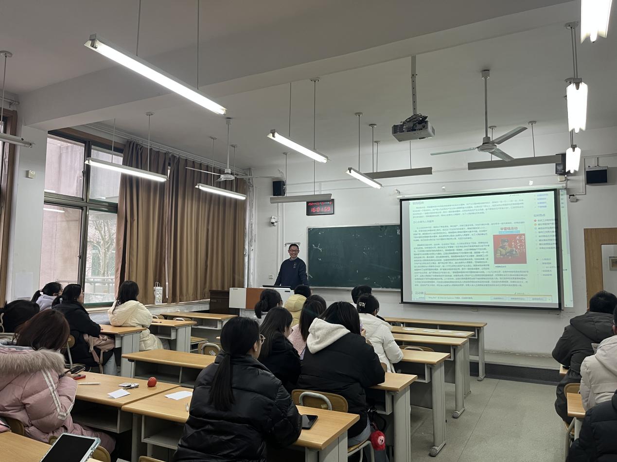 各班级召开以“学习雷锋精神争做有为青年”为主题的班会,学习毛泽东等老一辈无产阶级革命家为雷锋同志的题词,并现场组织雷锋精神主题交流会。旨在让同学们了�雷锋和当代雷锋,增强同学们以服务人民为荣、以团结互助为荣的价值观,自觉把自己的成长同服务他人、服务社会结合起来,理解“少年强则国强”,清晰地认识到自己肩负的历史使命�