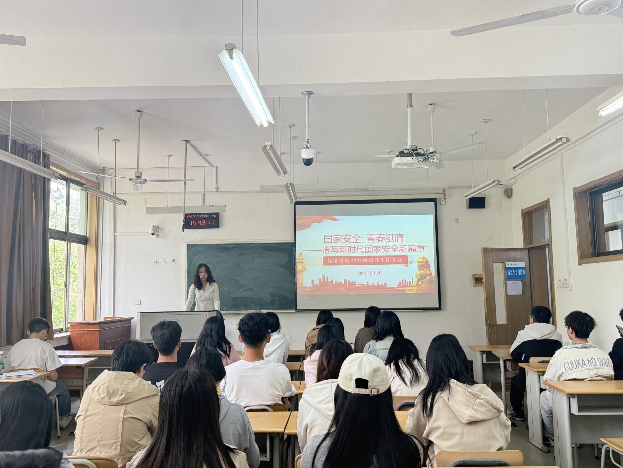 经济学院各团�部充分利用线上线下资源,广泛组织观看直播课程、专题宣讲、理论法规学习、知识问答、学习心得分享、观点辩论等多种形式的学习教育,讲好国安故事,展示国安成就,播撒国安种子,切实增强国家安全教育的宣传实效�
