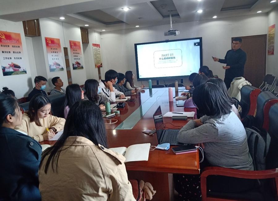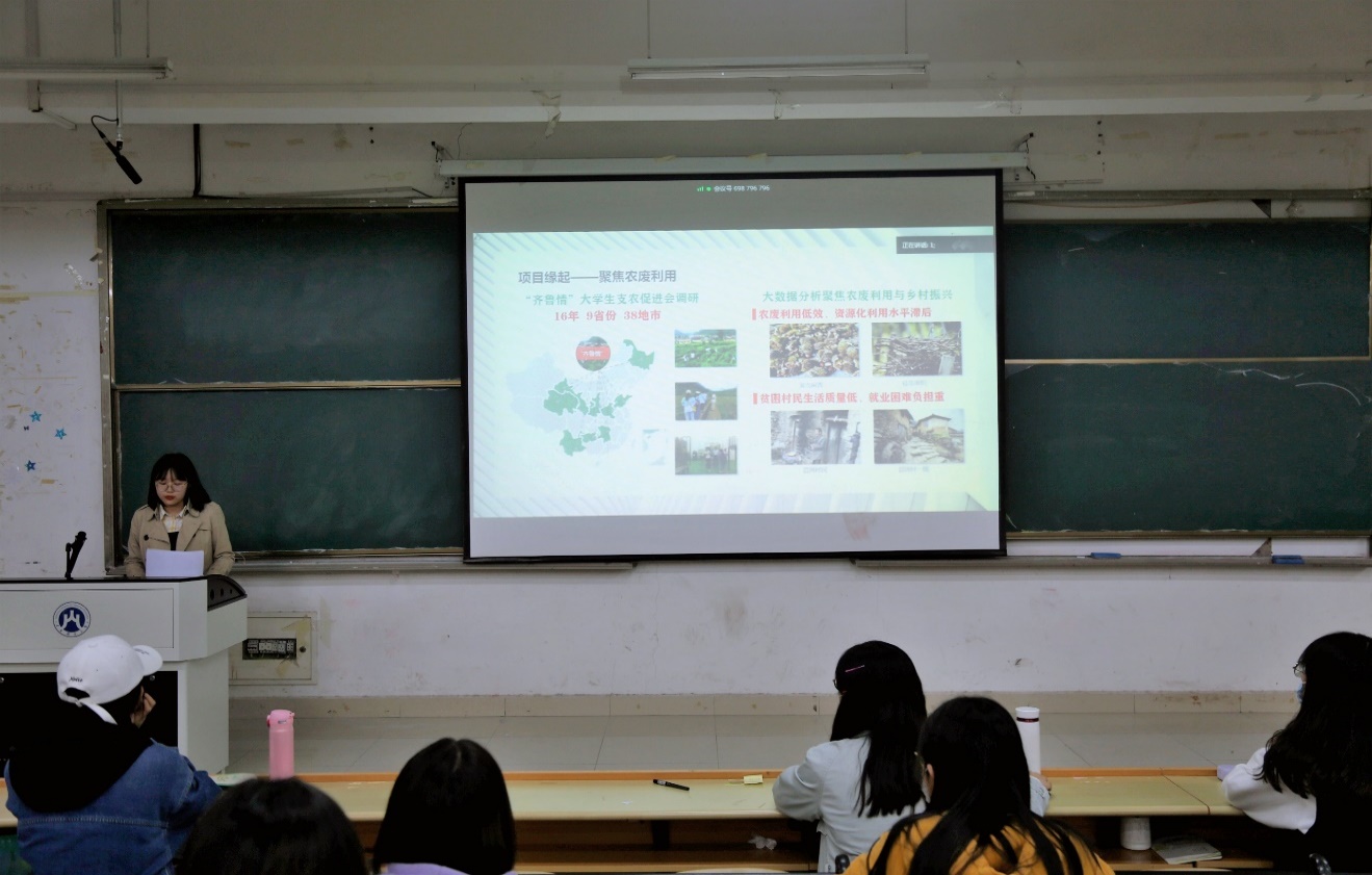 首先,“电商扶贫路径优化,助力乡村经济发展”项目负责人武文超结合自身经历,就调研报告的撰写进行了相关的经验分享:对什么是调研报告、如何正确认识调研报的文体、如何平时准确的撰写调研报告及调研报告的修改进行了详细的介绍,同时也对同学们提出的问题,进行了耐心的解答�