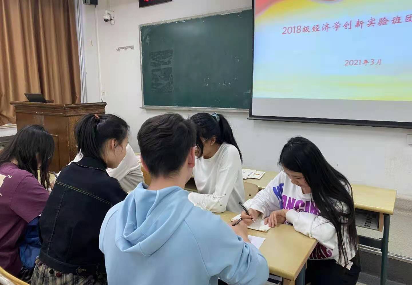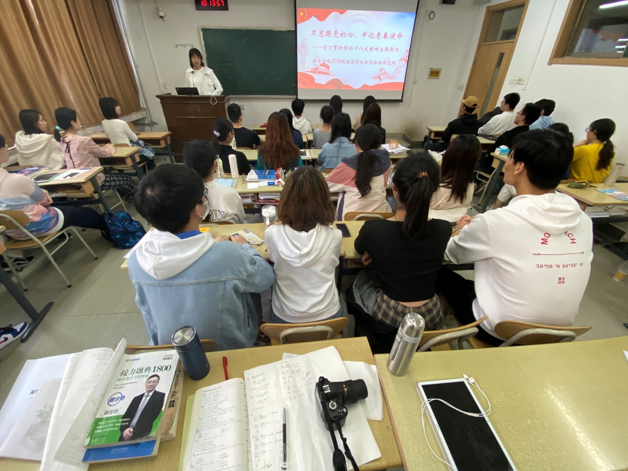 山东财经大学经济学院2018级经济学创新实班团支部共有团员32名,以习近平新时代中国特色社会主义思想为指导,认真贯彻落实党的十九届五中全会和团的十八大精神,围绕校团委和院团委中心工作,深化共青团改革目标,突出政治功能,彰显组织活力,提升基团组织引领力、组织力、服务力和大局贡献度,各项工作取得新成绩�